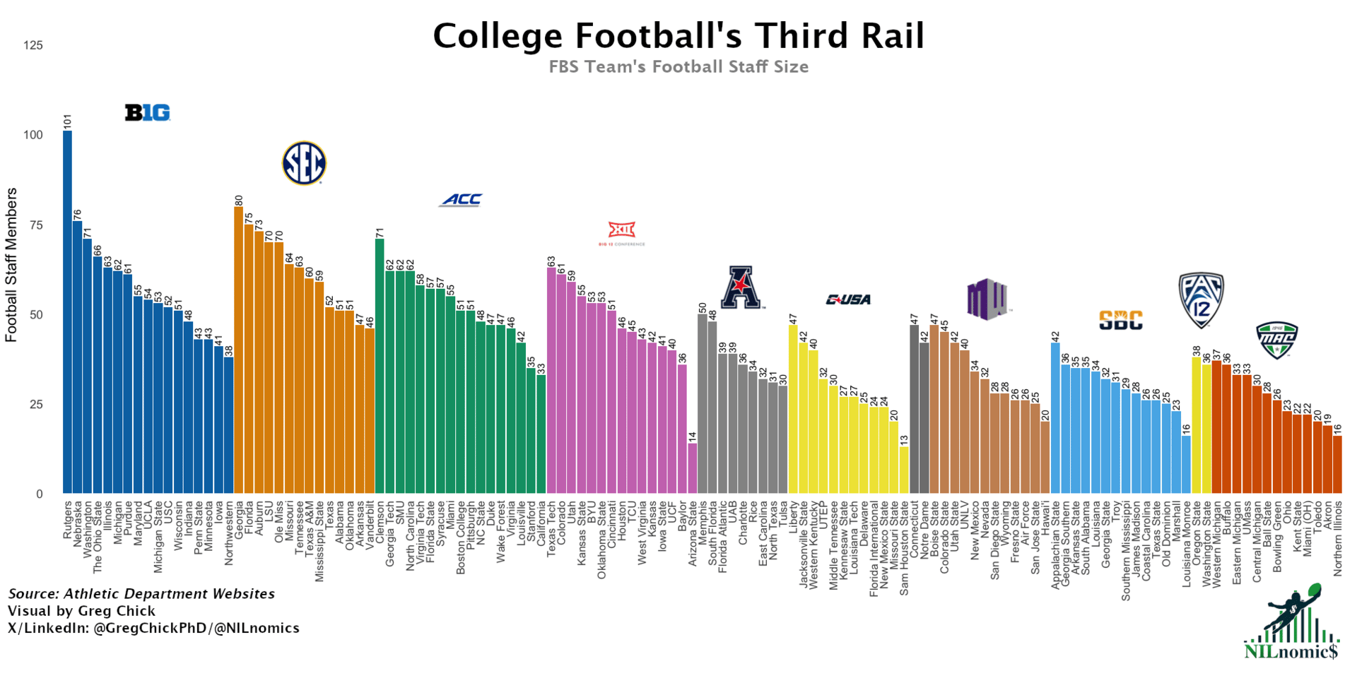 No one, and I mean no one, had Rutgers as #1 on this chart. I had to go back to the website and count it up manually myself. Yes - 101 staff are listed as working for Rutgers’ current 5-5 team. Do with that as you will.